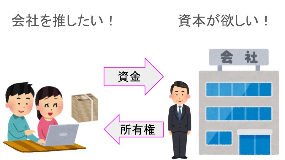 そこで、会社を所有する権利、所有権の1部を売る事で資本を得るぜ、これが株式だ